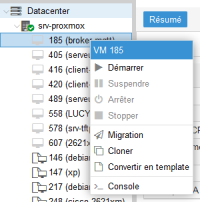 Pour commencer rendez-vous sur le site Proxmox via l'URL https://172.17.1.17:8006/ (en se logant avec son compte sur le royaume LDAP Scribe) Puis démarrer la VM en faisant clic droit sur la vm et on fait démarrer